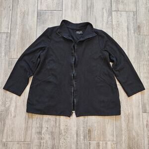 Eileen Fisher Ponte Stand-Collar Zip-Up Jacket Size L Black Active Travel FLAW