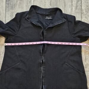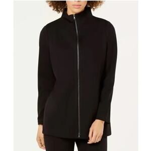 Eileen Fisher Ponte Stand-Collar Zip-Up Jacket Black Active Travel Stretch FLAW