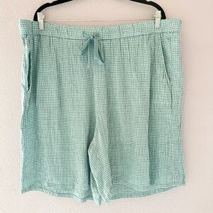 Eileen Fisher Puckered Check Button Down Shirt and Short Linen Set