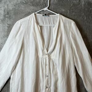 Eileen Fisher Puckered Linen Blend Button Up Tunic Size Large Peasant Cottage