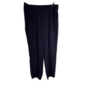 Eileen Fisher Pull On 100% Silk Navy Blue Pants Elastic Waist Straight Leg PS