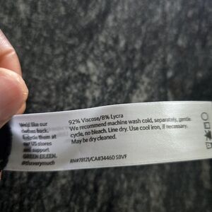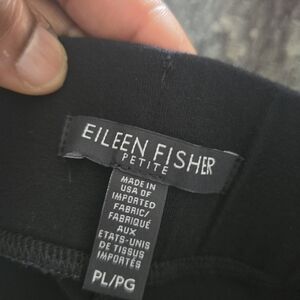 The product is a pair of Eileen Fisher pull-on pants in size PL for petite women, featuring a cropped style with a black color. These minimalist pants have a comfortable pull-on closure and are designed with a cropped length of 32x25 inches. Perfect for a sleek and modern look, these pants are a versatile addition to any woman's wardrobe.