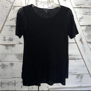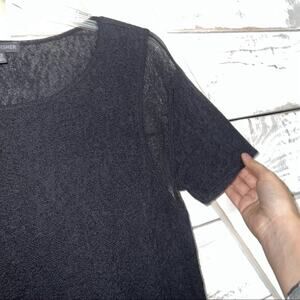 Eileen Fisher Pullover Sweater Top Womens S Small Black Knit Sheer Short Sleeve