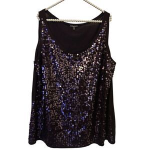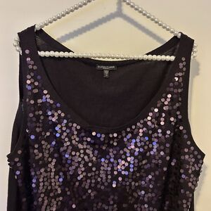 Eileen Fisher Purple Black Shiny Sequin 3X Merino Wool Round Neck Tank Top Y2K