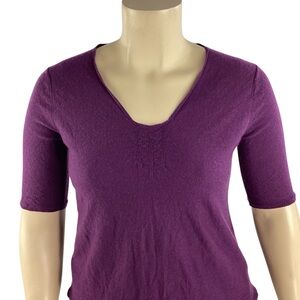 Eileen Fisher Purple Cashmere Elbow Sleeve V-Neck Sweater Size L