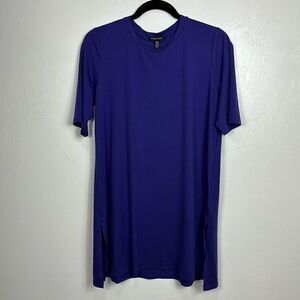 Eileen Fisher Purple Jersey Knit Short Sleeve Side Slits Tunic Top Size M