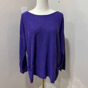 Eileen Fisher Purple Knit lightweight sweater top with front pockets