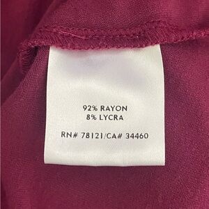 This Eileen Fisher tunic features a relaxed fit with 3/4 sleeves, crafted in a maroon burgundy hue. Its minimalist design and flowing silhouette make it a versatile addition to any wardrobe, perfect for layering or wearing on its own.