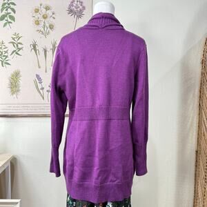 Eileen Fisher Purple Merino Wool One Button Collared Long Cardigan Sweater M
