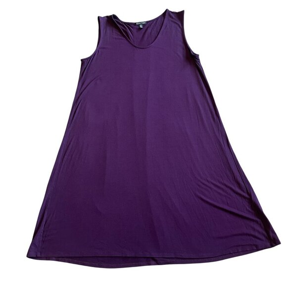 Eileen Fisher Purple Sleeveless Shift Dress Stretch Fabric Size Large Women's