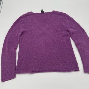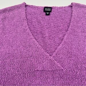 Eileen Fisher Purple Textured V-Neck Cotton Blend Sweater – Size L – Soft Knit