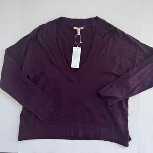 Eileen Fisher Purple V-Neck Sweater Relaxed Fit Size Medium NWT