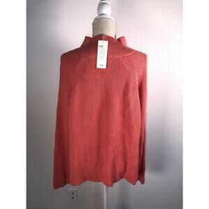 A soft blend of organic cotton brings luxurious warmth to a mock-neck sweater with roomy raglan sleeves. This is a cozy wardrobe essential. It is a gorgeous color and has a beautiful knit. The side is vented at the hem. The neckline is ribbed. Perfect for transitioning in the seasons and layering. New with tags, no rips, stains, or damage.