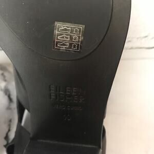 Eileen Fisher Rai Black Leather Chunky Heel Straps Sling Back Sandals Size 10