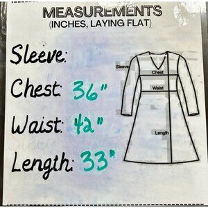 Size: XS Measurements: Chest: 36", Waist: 42", Length: 33" (from shoulder to hem)