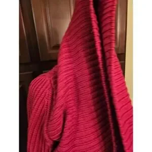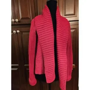 Eileen Fisher Raspberry Red Open-Front Ribbed Knit Cardigan