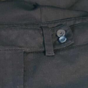 Eileen Fisher Rayon Nylon Stretch Wide Leg Pants in Black - they're a size Large and in good pre-owned condition but there was a missing bottom button so I replaced it, please see pics, otherwise no other issues.