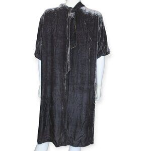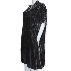 Eileen Fisher Rayon Silk Velvet Tunic Mock Neck Tie Dress Dark Gray with Pockets.
