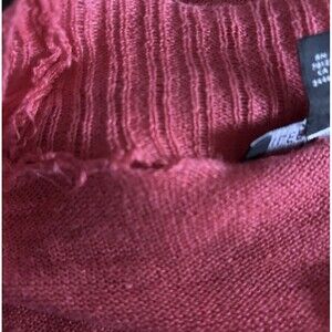Eileen Fisher Red 100% Linen Open Front Waterfall Cardigan Sweater Size XS