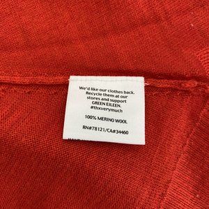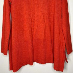Eileen Fisher Red 100% Merino Wool Open Front High Low Cardigan Sweater | Size M