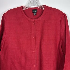 Eileen Fisher Red Bamboo Cotton Blend Button Up Shirt