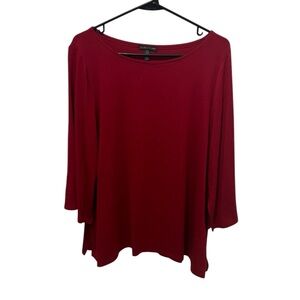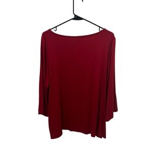 Wear it casually or dress it up. Beautiful red color. Three quarter sleeves with slit detail. Flowy and lightweight.