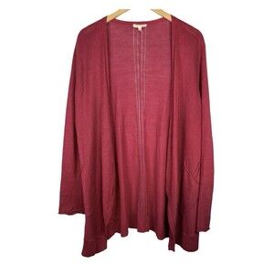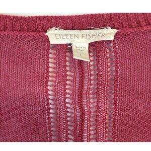Eileen Fisher Red Crochet Back 100% Linen Open Front Cardigan Sweater Large