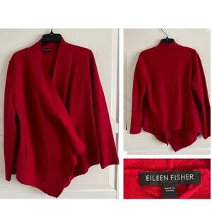 Eileen Fisher Red Merino Wool Long Sleeve Snap Cardigan Sweater 20893
