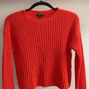Eileen Fisher Red Orange Crop Lory Cable Knit Shaker Sweater Pullover in size PP
