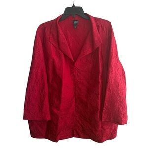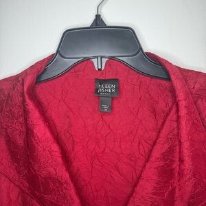 Eileen Fisher Red Silk Crinkled Button Up Tunic Lightweight Jacket