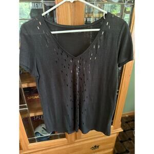 Eileen Fisher Relaxed Muted Cascading Sequin V-Neck T-Shirt Sz. S