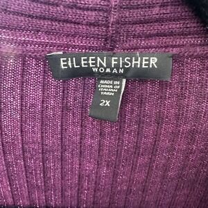 Eileen Fisher Ribbed Open Cardigan Sweater Merino Wool Women's Purple Size 2X