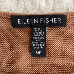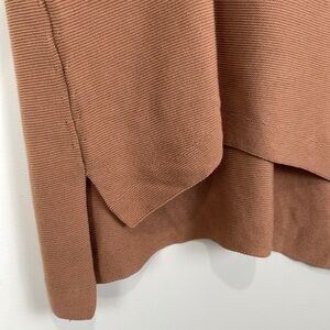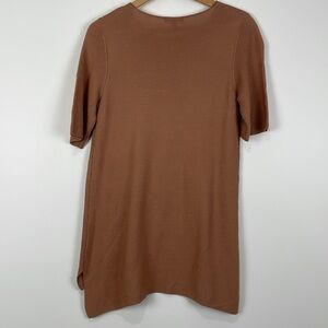 Eileen Fisher Rich Brown Short Sleeve Knit Top Tunic Elbow High Low Hem Minimal