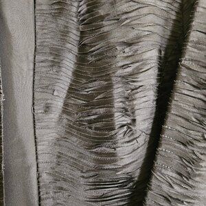 Beautiful fabric. Invisible hook and eye clasps along front.