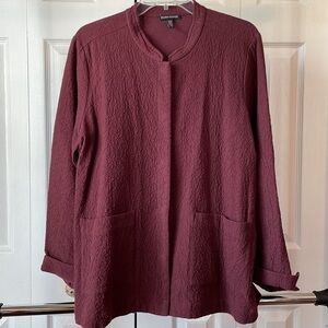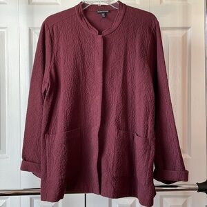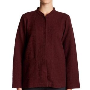 Eileen Fisher Ripple/Crinkle Organic Cotton Double Weave Jacket in Burgundy sz M
