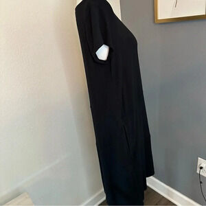 Eileen Fisher Round Neck Midi Viscose Dress Black Shirt Dress Women's Medium