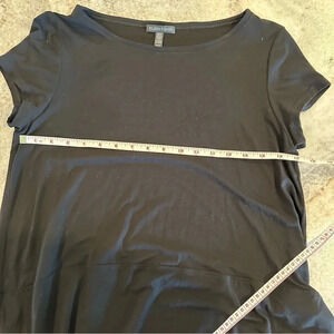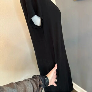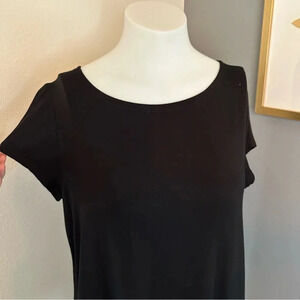 Classic black t shirt midi dress, has stitching the criss crosses the dress, slightly lower in the back of dress, very soft and lightweight feeling, Excellent pre owned condition