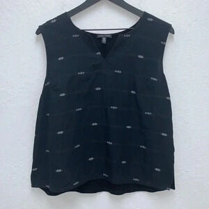 Eileen Fisher Round Split Neck Mixed Media Shell Top Size Large