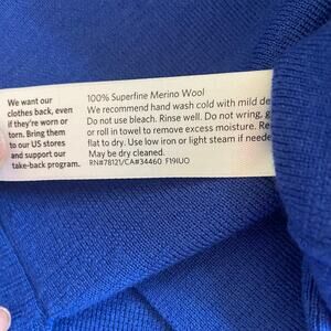 Eileen Fisher Royal Blue V-Neck Merino Wool Long Sleeve Sweater Sz S