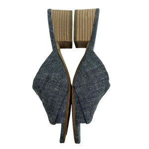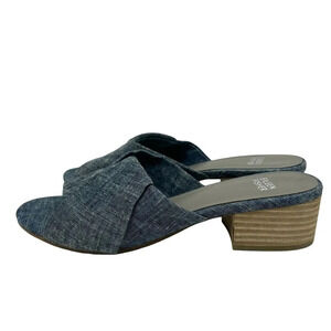 Eileen Fisher Ruche Mule Sandals Chambray Blue Denim Block Heel Comfort Size 8