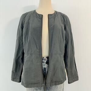 Eileen Fisher Rumpled Zip Lightweight Jacket Cotton-Nylon Blend Gray Size M
