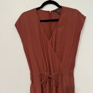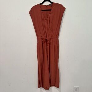 Eileen Fisher Russet Brown Crepe Faux Wrap Wide Leg Crop Jumpsuit XXS