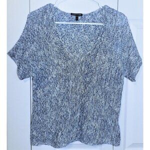 Eileen Fisher S Blue Tweed Knit Short Sleeve Scoop Neck Cropped Sweater