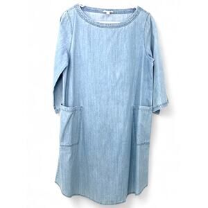Eileen Fisher S Dress Mini Denim Light Wash Jean Oversized Tunic Top Pullover