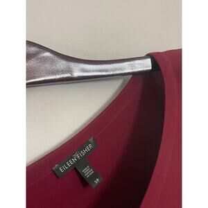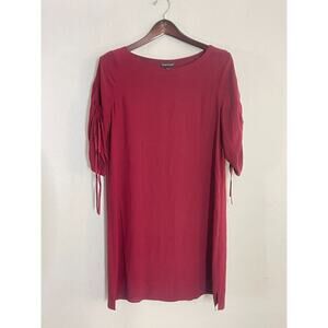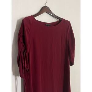 Eileen Fisher S Dress Silk Burgundy Ruched Tie Sleeves Pullover Shift Relaxed