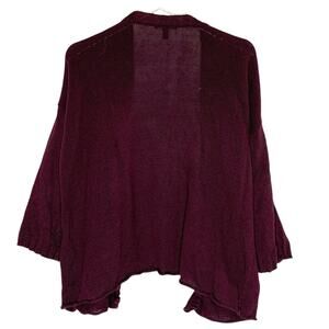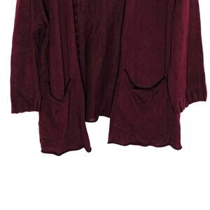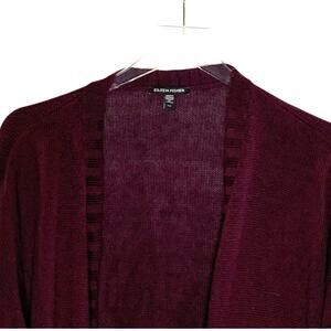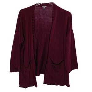 Eileen Fisher S Linen Cotton Blend Open Cardigan Sweater Knit Pockets Plum