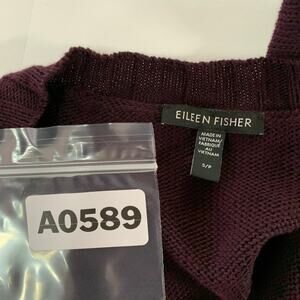 Eileen Fisher S Linen Cotton Blend Cardigan Lightweight Knit Pockets Plum