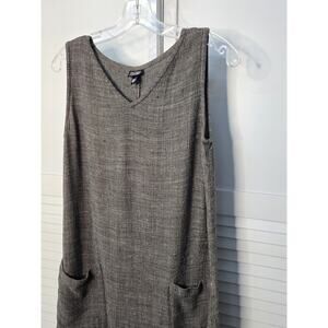 Eileen Fisher S Maxi Dress Black Tweed Sleeveless Linen Blend Lagenlook V-Neck