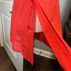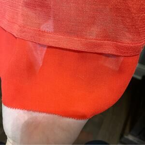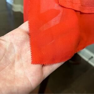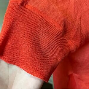 Eileen Fisher SILK Orange Loose Tunic Top Blouse Shirt Sheer Trim V Neck Med
