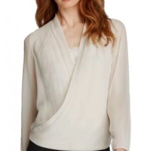 A drapey V neck top set apart by subtle dolman sleeves. Soft and shimmering in the washable silk blend material.